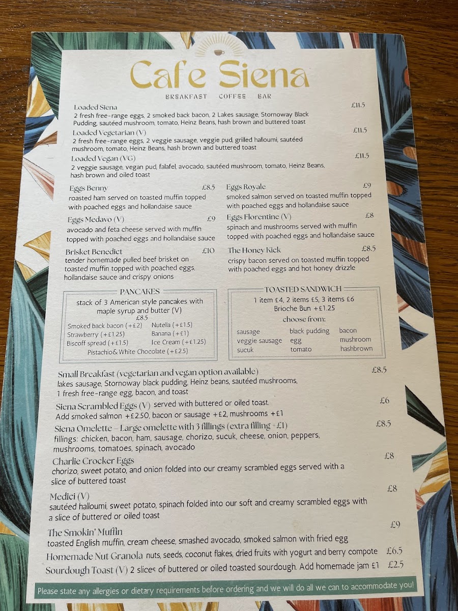 - Noteworthy Dishes: Full Siena Breakfast, Eggs Benny, Turkish Eggs